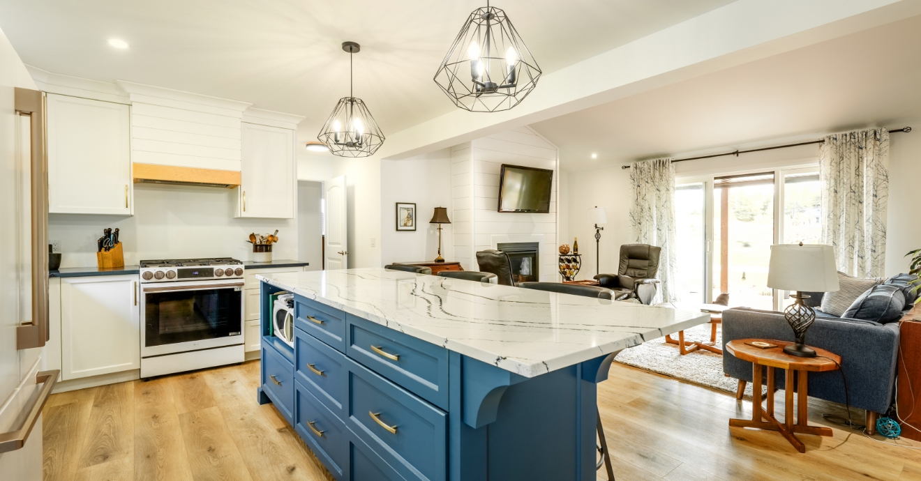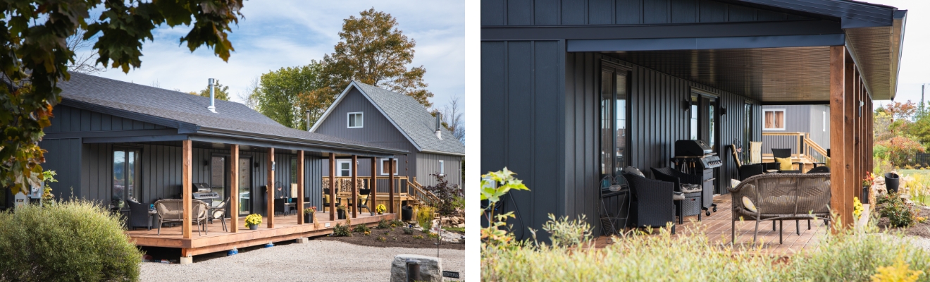 Nov 24, 2025 Share Back to Blog Back to Blog Happy Homeowners: Tamara & Ann’s Downsized Dream Home Embracing everything that retirement has to offer, Tamara and Ann have been enjoying life as it comes. But the time has come to set their sights on the future. Knowing exactly how difficult it can be to find and move into the perfect home once your mobility has decreased, they chose to future-proof their life. Or in their own words, “It was better to get ahead of the curve and plan for this move on our terms, rather than wait for our health to force an unplanned move.” And so the search began for their forever home. When none of the pre-built homes they explored met their needs, Tamara and Ann decided to look into a custom build instead. With their existing cottage that would require extensive renovations, it would be easy enough to use the property for their new home. However, having looked into it as an option in the past, they knew that some trades could be difficult to find in cottage country, not to mention the numerous permits and bylaws they would have to work around. That’s where Quality Homes came in. After weighing their options, it was clear to Tamara and Ann that we checked all their boxes. “We were immediately sold. Having the house built in a factory avoided the warping of wood that would normally be exposed to the elements during the build process meant a better construction. The capability to customize the design and trim was essential to our decision. Having the Quality Homes support team behind the build meant we had all the expertise working together to ensure no issues.” Choosing their design was the hard part. With a very specific vision of what their custom home was going to look like, Tamara and Ann knew they needed something very special. This was when they discovered the true beauty of Quality Homes. With endless ability to customize your home, our floorplans are the foundation of your custom home dreams. QUALITY HOMES RIVERSTONE DESIGN TAMARA & ANN’S CUSTOMIZED RIVERSTONE FLOORPLAN And so even though it didn’t quite meet their requirements, they chose The Riverstone to begin their custom build. The bedrooms were separated to opposite ends of the home, along with the bathrooms. The main living areas were moved into the centre of the home as well, combined into one open concept space. They even chose to add cathedral ceilings to create a bright, airy atmosphere. Outside, the porch was expanded into a much more functional ten-foot covered deck. “It met the criteria of being a small single story house and our Building Consultant Nancy’s assurance that it was just a starting point and that we, as long as we stayed within the physical constraints of each module, could customize it to our hearts content, so we did. The more we rearranged the layout the more it made sense and became our perfect retirement home. And that’s the point. With a little imagination and trust in Quality’s team of experts the plan was enhanced to create the perfect space for our lifestyle and needs.” Once their design was finalized, it was time for Tamara and Ann to move onto the most exciting part of building a custom home—choosing their finishes. Exterior Finishes: Vinyl Siding by Gentek (Board & Batten Vertical – Colour: Iron Ore) Soffit, Fascia & Frieze Board by Gentek (Colour: Black) Roof Shingles by Owens Corning (Colour: Onyx Black) Kitchen/Living Room Finishes: Custom Cabinetry by Woodland Horizon Sleek Pull-Down Kitchen Faucet by Moen (Colour: Matte Black) Custom Range Hood with Maple Shiplap Accent Heat & Glo Propane Fireplace by Fergus Fireplace (With White Shiplap Surround) Vinyl Plank Flooring by Centura (Quantum Series – Colour: Island) Bathroom Finishes: Custom Vanity by Woodland Horizon Voss Bathroom Sink Faucet by Moen (Colour: Chrome) Vinyl Tile Flooring by Cranbrook Flooring (Northern Expressions Series – Colour: Calacutta) What is your favourite part of the home? “The kitchen for sure. We opted for an oversized island instead of a small island and separate dining area. It’s beautiful and serves our lifestyle perfectly. Dropping the wall between the kitchen and living room created one functional and impressive living space; the living room ceiling was pushed up into the roof attic allowing for a cathedral ceiling that further opens up the space.” With their finishes selected and their home heading into the Quality Homes Factory, the building process began. In June, construction began. By July, they had already had an opportunity to tour their modules inside our factory. In August, their old cottage was demolished and sitework began. And when September rolled around, it was time for Delivery Day! Our streamlined process has been fine-tuned over 38 years of building the finest modular homes in Ontario, and it shows in the speed and quality of every home. And it’s safe to say that Tamara and Ann were highly satisfied with the results. “Five months after the start of the build we moved in, with zero issues or concerns. By contrast, there are multiple builds around us that have been in progress, exposed to the elements and remain uninhabitable for over two years. The engineered, factory build process is hands down the better approach. Thank you, Quality Homes!” And now they can start their dream retirement in a comfortable, beautiful one-level home that perfectly reflects their style—and lifestyle! We’re so grateful to Tamara and Ann for sharing their experiences, and for trusting Quality Homes to build your dream home. We wish them all the best in their very own custom Riverstone! And before we go, we have one last piece of wisdom from our newest Happy Homeowners: “Trust the expertise of the Quality team, let your ideas flow and watch Quality realize them. Ask questions and don’t be afraid to push the envelope of what can be achieved.” CONTACT US: Send us a message online: click here Give us a call: 1-800-265-2648 Send us an ema